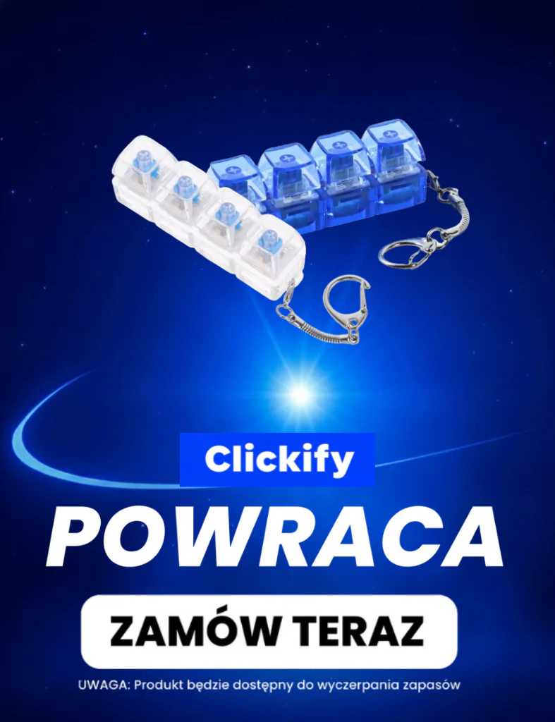 Clickify™to więcej niż gadżet! To mały sposób na spokój w codziennym chaosie! Kiedy stres i napięcie dają o sobie znać, jedno kliknięcie wystarczy, by poczuć ulgę i odprężenie. To prosta forma relaksu, którą możesz mieć zawsze przy sobie! W pracy, szkole czy w drodze.